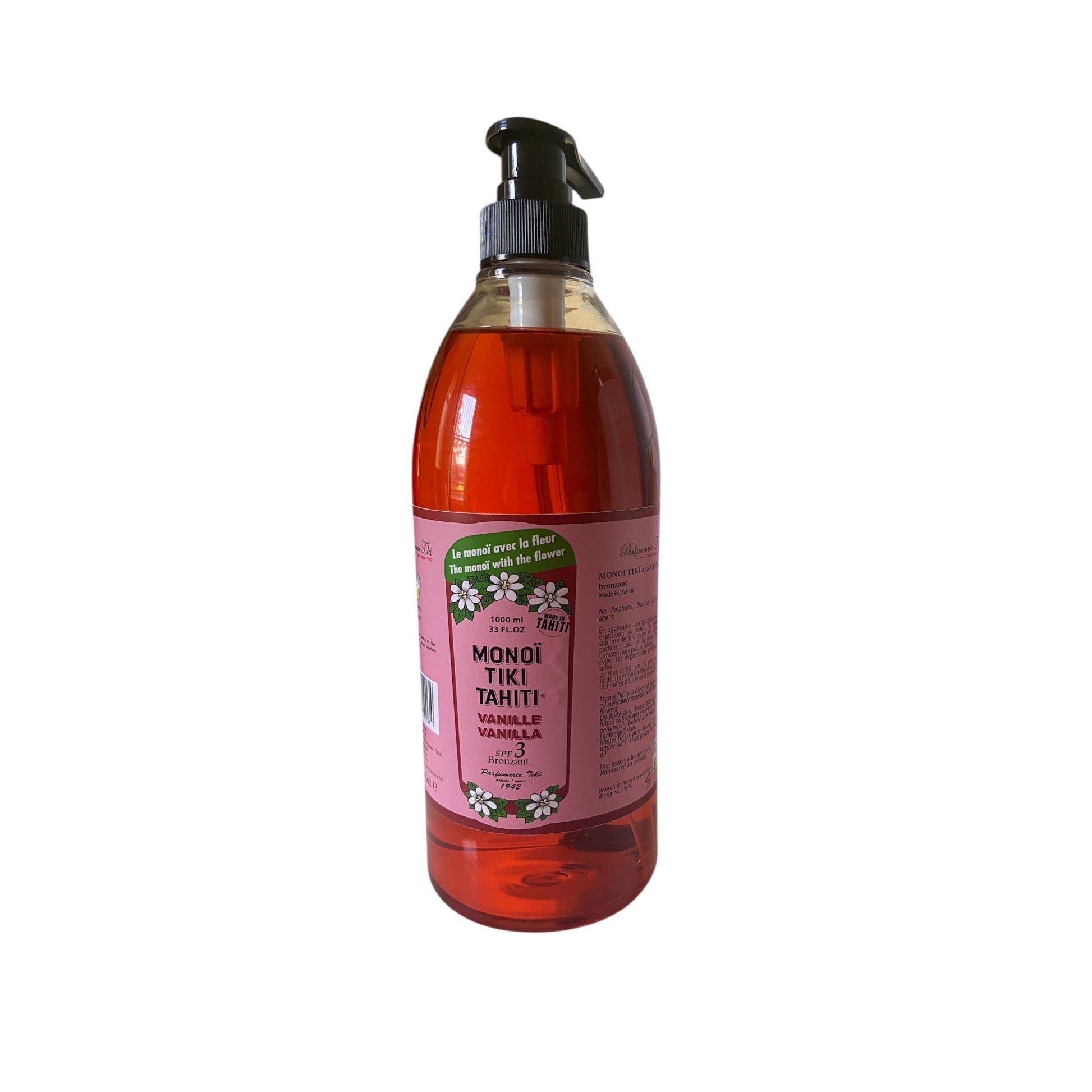 Please Note: Our Monoi Oil arrives direct from Tahiti. 1L bottles may come with or without pump lids (as pictured). If available, pump-lid bottles are sent first.