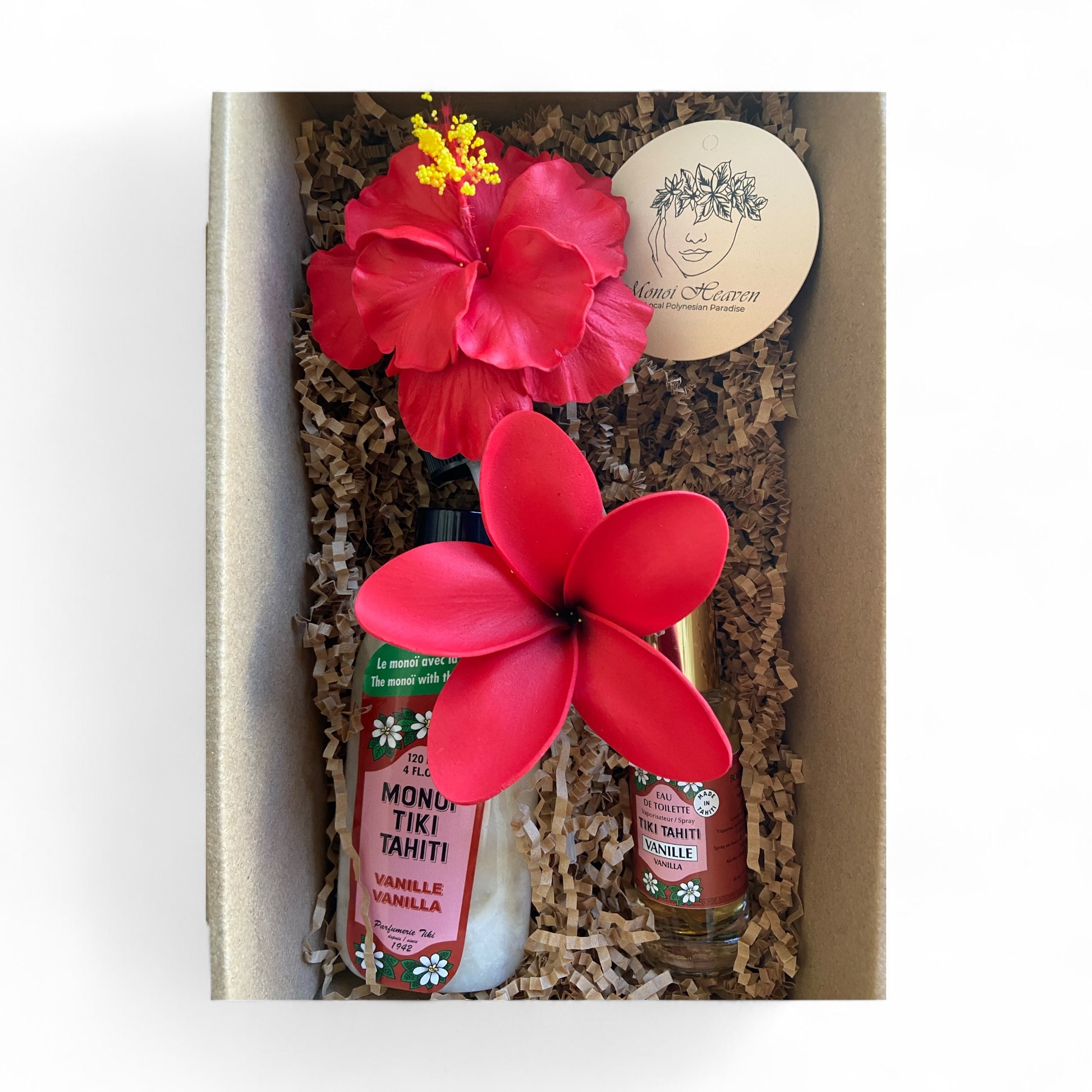 Get ready to brighten up that mood with our Uplift Gift Box! This box includes a 120ml bottle of luxurious Monoi and a 30ml Eau de Toilette, accompanied by two adorable handmade foam flowers. Let this cute and playful set bring a smile to your face and a spring to your step! Because we need to enjoy life! When we can, we will!